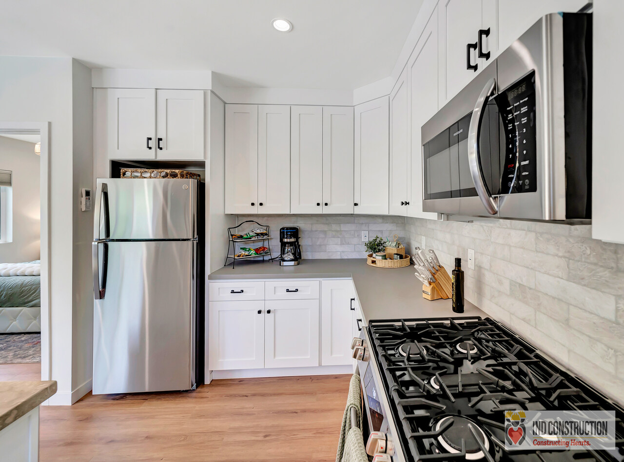 We took this unused detached garage and gave it a brand-new purpose, transforming it into a beautiful, self-contained Accessory Dwelling Unit (ADU)! This custom build includes a full kitchen, spacious bathroom, living area, and dedicated bedroom space — all designed with comfort, efficiency, and functionality in mind.